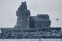 美國(guó)一燈塔變身冰雕