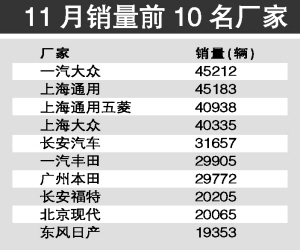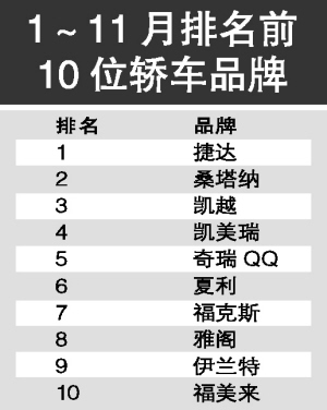 1~11月,自主品牌轎車共銷售113.61萬輛,占轎車銷售總量27%,前10大品牌共銷售82.78萬輛,占自主品牌轎車銷量的73%。自今年10月以來,自主品牌就實(shí)現(xiàn)百萬輛銷售成績(jī)的突破,盡管如此,自主品牌還是不敵日資企業(yè)上升趨勢(shì)強(qiáng)勁。