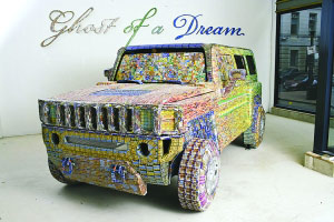 一輛用價值3.5萬美元已兌獎的彩票制作的悍馬H3近日在美國紐約亮相,該車的擋風(fēng)玻璃、后視鏡、輪胎等都是用廢棄彩票覆蓋而成。
