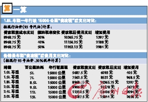 業(yè)內(nèi)預(yù)測,國家開征燃油稅后稅率將在30%~50%之間。以該車主的1.8L排量車型計算,假設(shè)一年行駛里程為15000公里左右,平均油耗為8.5升/百公里左右,每年需加1275升油。按照目前廣州93號油零售價每升6.25元計算,車主每年在油費上需要支出7968.75元,加上養(yǎng)路費1000元,目前每年這部分的總花費為8968.75元。