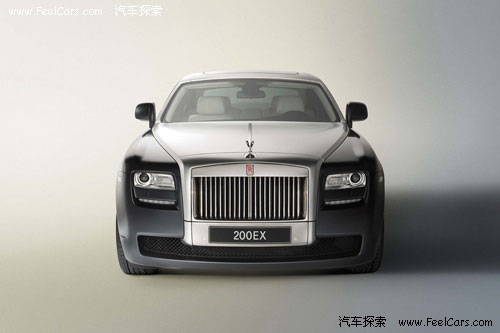 從外觀上看,200EX的風格與幻影十分相似。豎立在引擎蓋上的歡樂女神提示著我們這是一輛真正的勞斯萊斯。幾乎筆直的水箱格柵以及厚重的車尾都粗造出莊嚴的氣勢,對開式車門可以讓貴族車主更方便的上車。