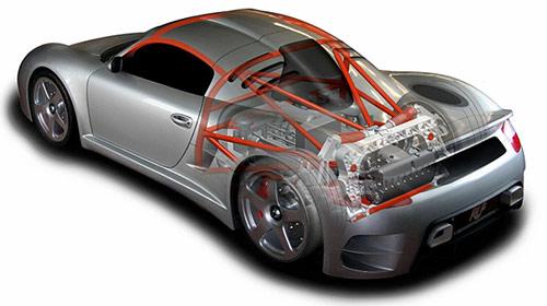 經RUF重新打造的3.7L水平對置六缸雙渦輪增壓發(fā)動機,最大功率輸出700馬力/7000轉,扭矩峰值890牛•米/4000轉;并采用六速順序式變速箱,中置后驅的驅動形式;由靜止加速到100km/h僅需3.2秒,極速更是達到了375km/h。正如之前所說,若你認為這只是一款深度改裝的保時捷,那便大錯特錯了。打開CTR3的引擎艙蓋后,你會發(fā)現(xiàn)這里擁有大量經典的賽車設計:管狀式車架、多連桿懸掛、水平減震器等等……這些都是RUF與Multimatic of Canada共同開發(fā)的產物。