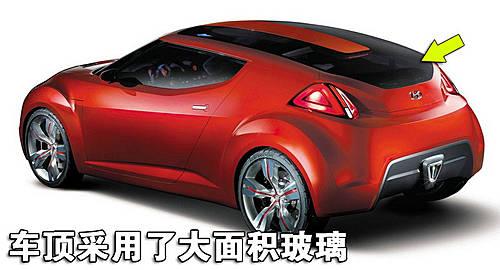 現(xiàn)代Veloster coupe概念車是由現(xiàn)代設(shè)計與研發(fā)中心研發(fā)的第三代概念車,車名Veloster是velocity速度和Rodster跑車之意,將出現(xiàn)在本屆法蘭克福車展上。該車長寬高分別為4.1米、1.79米和1.45米,軸距2.6米。