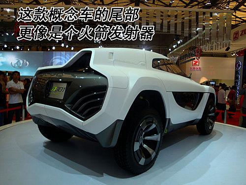 長(zhǎng)安E301概念車(chē)的尾部采用不規(guī)則狀設(shè)計(jì),左右兩側(cè)并沒(méi)有采用對(duì)稱的設(shè)計(jì),而是采用凹凸的造型方式,看上去非常另類。而且這款車(chē)的尾部整體設(shè)計(jì)也比較有特點(diǎn),很像是一個(gè)火箭發(fā)射器。
