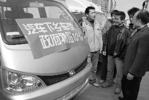 盼望已久的《汽車摩托車下鄉(xiāng)實(shí)施方案》近日終于出臺。 針對這一將對中國汽車業(yè)產(chǎn)生較大影響的政策,中國汽車流通協(xié)會、相關(guān)汽車企業(yè)、機(jī)構(gòu)均提出了自己的看法。大家一致認(rèn)為,與輕型載貨車相比,微型客車受益更大。此外,與整車相比,市場占有率較大的核心零部件企業(yè)將更受益。