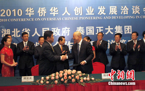 15日晚間出席簽約儀式的正大集團(tuán)董事局主席謝國民指出,在中國新農(nóng)村建設(shè)的過程中,正大集團(tuán)通過為農(nóng)民提供其缺乏的資金、技術(shù)、管理和市場并采取擔(dān)保等方式,幫助農(nóng)民規(guī)避風(fēng)險(xiǎn),增加收入。正大集團(tuán)希望與中國農(nóng)業(yè)大省湖北在農(nóng)業(yè)等領(lǐng)域開展合作。
