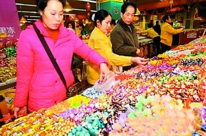 昨日,重慶市場白糖批發(fā)價小幅上調,商家報價5750元/噸,較上周的價格高了約20元/噸,創(chuàng)下兩年來新高。隨后記者走訪各大超市發(fā)現(xiàn),散裝糖果部分開始提價,而朝天門、楊家坪美儂婚慶市場的喜糖報價也略有上升。