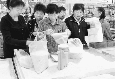 25日是廈門市定向供應(yīng)“優(yōu)惠大米”的第三天,記者看到在大潤發(fā)超市糧油優(yōu)惠專柜前擠滿了前來買大米的市民。家住蓮坂小區(qū)的馬阿姨一次就買了3大袋優(yōu)惠米。她說,家里5口人吃飯,全靠她2000多元的退休金生活,還得照顧兩個身體不好的兄弟,平時的開銷都得精打細算,原來買的都是1.8元左右的米,現(xiàn)在市場都見不到了,所有大米基本上都漲到2元多。聽說政府為保障低收入群體生活,特供這種“優(yōu)惠大米”,她早早趕來購買。