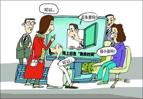 在搜索引擎百度上輸入“出售剩余時間”,可得到相關(guān)網(wǎng)頁400多萬篇,“出售時間”生意的火爆可見一斑。“你想干什么我來幫你完成,給你節(jié)約時間,用我的時間來給你辦事,然后你支付一定的費(fèi)用,這就是‘出售剩余時間’。”網(wǎng)友劉女士在廣告上如此解釋“出售剩余時間”。