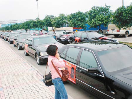 昨日下午2時(shí)30分許,在兩輛“三菱”越野車的帶領(lǐng)下,30輛清一色的黑色奔馳轎車列隊(duì)駛?cè)胛靼蚕剃枃H機(jī)場(chǎng)停車場(chǎng),引起不少過往乘客駐足觀看。 “不知道哪位貴賓要來西安?”不少人都小聲議論著。30輛黑色奔馳轎車中,西安本地牌照的不少,還有北京、天津牌照的車輛,全部為S500、S6OO系列。