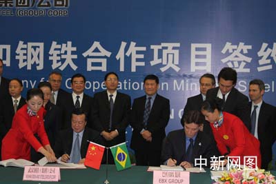 中新網(wǎng)武漢11月30日電 (徐金波 白方)經(jīng)過一年多時間的會談,武漢鋼鐵集團公司30日在武漢與巴西EBX集團達成合作協(xié)議:武鋼將出資4億美元投資巴西EBX集團下屬MMX公司,獲得該公司鐵礦石產品權益;同時與EBX集團合資,在巴西里約州阿蘇工業(yè)園區(qū)建設鋼鐵廠。