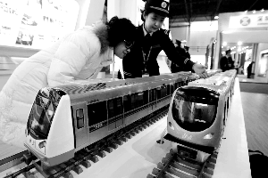 北京自主生產的地鐵房山線列車模型昨日首次亮相老國展,列車整車國產化率達到95%以上,時速可達100公里。