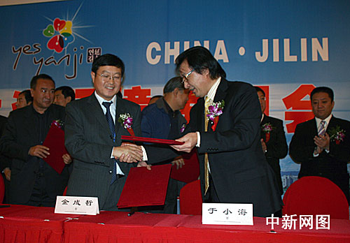 會上,還舉行了延吉市與北京宇辰集團合作總投資十億元,建設延吉市朝鮮族民俗風情園;延吉市與上海金太陽能源科技開發(fā)有限公司合作總投資二十二億元,建設年產(chǎn)一百二十兆瓦銅銦鎵硒太陽能電磁板和太陽能空調(diào)機項目等五個項目的簽約儀式,共計投資三十三億元。