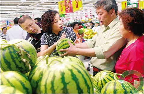 雖然今年的瓜小,但是也有一部分市民卻為此“偷著樂”,上海商報(bào)記者小王打趣地告訴本網(wǎng),“今年的西瓜比往年,是真的小,大概一個(gè)正好夠一個(gè)人吃的,公平又健康,歡迎你來看世博會(huì)時(shí)好好品嘗!(余曉芬)