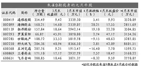 記者發(fā)現(xiàn),在剛剛過去的4月份,9只股票的整體表現(xiàn)也跑贏了大盤指數(shù),9只股票中漲幅最大的海翔藥業(yè)上漲超過20%,漲幅第二的拓邦股份則上漲19.10%,有4只股票的漲幅在10%以內(nèi),而下跌的僅有3只。
