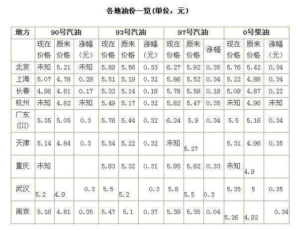 6月1日,各地汽柴油價(jià)格紛紛上調(diào),以下為數(shù)據(jù)匯總: