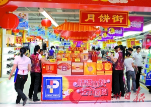中秋佳節(jié)將至,各大超市賣場的月餅銷售專區(qū)也進(jìn)入了銷售“沖刺”階段。昨日記者走訪了東城區(qū)嘉榮超市,該超市所售月餅最便宜的為59元,最貴為268元,百元以下的月餅占近九成!敖衲暝嘛灥膬r(jià)格與去年差不多,部分品牌還降價(jià)了!笔圬泦T胡紅告訴記者,鑒于整體經(jīng)濟(jì)環(huán)境和消費(fèi)者的承受力,商家們并沒有漲價(jià),以榮華雙黃白蓮蓉月餅為例,其在東莞的售價(jià)去年為198元,今年則為172元,“降低了逾13%,其他有些品牌的月餅也同比下降了2~10元不等!