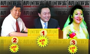 今年將首次有1000位富豪上榜,比起去年多了足足200人,系列子榜共有14個。提前曝光的今年前三強中,39歲的國美集團董事局主席黃光裕以430億元的身家問鼎中國首富,這也是他繼蟬聯(lián)2004—2005年中國首富后,第三次當上中國首富。在“胡潤百富榜”十年的歷史中,除了黃光裕之外,只有榮智健家族曾三次當首富。評價黃光裕,胡潤表示,“他的最大特點是對自己企業(yè)的戰(zhàn)略模型和戰(zhàn)略計劃很清晰。”