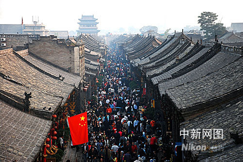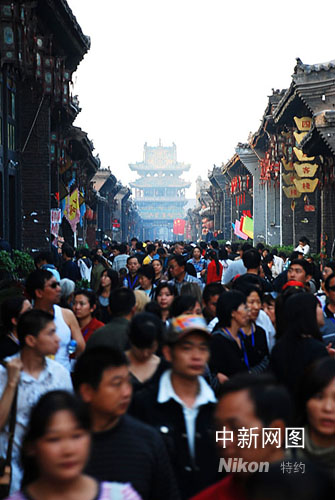 國慶期間,人潮涌動的平遙古城南大街。 裴旭亮 攝