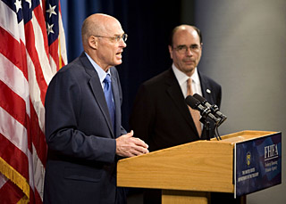 美國財政部長亨利·保爾森7日在新聞發(fā)布會上宣布,國會今年7月份為監(jiān)管住房抵押貸款機構(gòu)而批準成立的聯(lián)邦住房金融署將接手“兩房”日常運作。