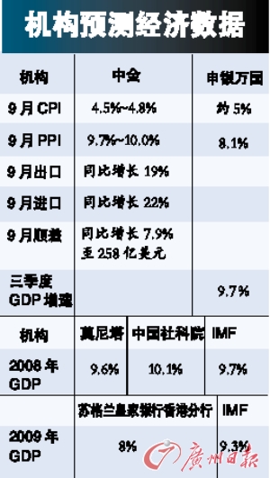 多家機(jī)構(gòu)已提前發(fā)布了他們對(duì)CPI和PPI的預(yù)測(cè)數(shù)據(jù)。此次,各家機(jī)構(gòu)高度一致地得出了CPI和PPI有望雙降的結(jié)論。不過,在“保增長(zhǎng)”成為宏觀調(diào)控的首要目標(biāo)的背景下, GDP增速回落已經(jīng)成為不能回避的問題,多家機(jī)構(gòu)紛紛預(yù)測(cè),三季度經(jīng)濟(jì)增速繼續(xù)延續(xù)今年以來的回落態(tài)勢(shì)。