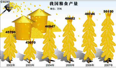 改革開放以來,我國雖然積極開拓利用兩種資源、兩個(gè)市場,但不管經(jīng)濟(jì)環(huán)境怎樣變幻,我國始終不渝堅(jiān)持以國內(nèi)為主滿足糧食需求、確保國家糧食安全的方針。進(jìn)入新世紀(jì)以來,黨和政府更采取了一系列“惠農(nóng)、興糧、富民”政策,廣大農(nóng)民種糧生產(chǎn)積極性空前增強(qiáng),全國農(nóng)業(yè)糧食連續(xù)4年增產(chǎn)。2007年,全國糧食總產(chǎn)量超過5億噸,除大豆外,谷物完全能滿足需求。目前中國糧食的對外依存度很低,糧食自給率一直保持在95%以上。同時(shí),我國糧食儲(chǔ)備也連續(xù)增長,糧食安全系數(shù)達(dá)到30%以上,遠(yuǎn)遠(yuǎn)超過聯(lián)合國糧食及農(nóng)業(yè)組織(FAO)提出的17%—18%的糧食安全線。