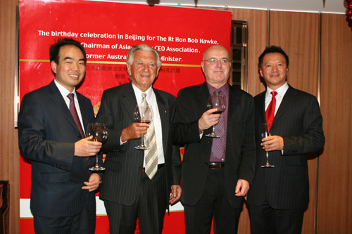 亞太總裁協(xié)會(huì)全球執(zhí)行主席鄭雄偉先生首先致祝辭,鄭雄偉高度贊揚(yáng)霍克先生多年來(lái)為全球經(jīng)濟(jì)發(fā)展,特別是亞太經(jīng)濟(jì)合作與發(fā)展,為中澳友誼,為加快中國(guó)發(fā)展所做的積極貢獻(xiàn)。衷心祝愿霍克先生在中國(guó)的生日過(guò)得別具意味。