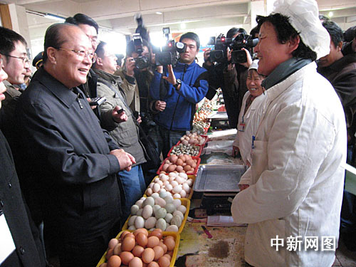 中新網(wǎng)鹽城十二月二十六日電 (記者 陳光明)今天,位于江蘇省鹽城市中心的人民路農(nóng)貿(mào)市場(chǎng)比往常更為熱鬧:許多市民等候在市場(chǎng)門口,迎接國(guó)務(wù)院產(chǎn)品質(zhì)量和食品安全專項(xiàng)整治活動(dòng)檢查組的到來(lái)。在人群簇?fù)碇,?guó)家質(zhì)檢總局局長(zhǎng)李長(zhǎng)江面對(duì)媒體采訪時(shí)說(shuō):產(chǎn)品質(zhì)量和食品安全集中整治行動(dòng)是民心工程、德政工程。