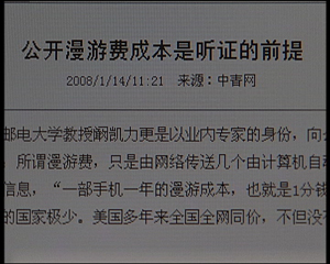 2008年1月22日,多年來備受質(zhì)疑的手機漫游費終于踏上了破冰之旅,在北京河南大廈四層的國際會議廳里,降低移動電話國內(nèi)漫游通話費上限標準聽證會如期舉行。而會場外的狹窄通道,早已被各路媒體圍得水泄不通,大家最關(guān)心的問題莫過于“漫游”在公眾視野范圍外的漫游費成本是否在聽證會上予以公開?