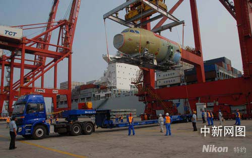 7月24日,空客A320系列飛機(jī)天津總裝線首批大部件從德國漢堡經(jīng)海運(yùn)抵達(dá)天津。胡志強(qiáng) 攝影