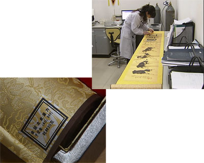 記者百般努力之下,終于在北京找到了一家權(quán)威的檢測機構(gòu),譜尼測試是一家專業(yè)的測試機構(gòu),不僅具備中國合格評定國家認可委員會CNAS及CMA資質(zhì),同時他們的檢測報告也得到美國、英國、德國等58個國家和地區(qū)相互認可,為了準確測量這幅純金畫卷的含金量,檢測人員首先剝開了裝裱的布,測出純金畫卷的面積為5837.66平方厘米。