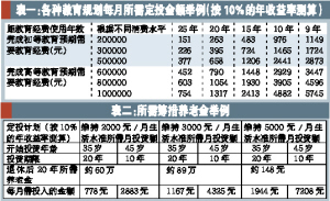 根據(jù)泰達(dá)荷銀基金公司提供的數(shù)據(jù)顯示,如果你在孩子出生時(shí)開始積累子女完成高等教育所需的60萬元經(jīng)費(fèi),那么,以10%的復(fù)利計(jì)算,投資期限15年,你每月只需投資1448元即可完成子女教育經(jīng)費(fèi)規(guī)劃。需要提醒投資者的是,子女教育費(fèi)用的積攢越早越好,籌措同樣金額的教育經(jīng)費(fèi),越早開始,你的經(jīng)濟(jì)壓力就越小。