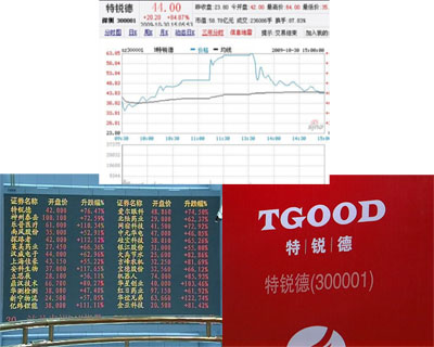 青島特銳德被眾多媒體稱為“創(chuàng)業(yè)板第一股”,第一家上會(huì)、第一家審核通過(guò)、第一個(gè)發(fā)布招股書、并獲得創(chuàng)業(yè)板001號(hào)證券代碼。今天,特銳德收盤于44元,較發(fā)行價(jià)上漲約85%。當(dāng)初投資特銳德的7名自然人其身價(jià)都已過(guò)億。