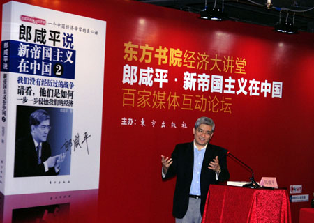 郎咸平于美國沃頓商學院獲得博士學位后,曾執(zhí)教沃頓商學院、密歇根州立大學、俄亥俄州立大學、紐約大學和芝加哥大學,現(xiàn)任香港中文大學教授。他的主要著作有《誰在拯救中國經濟》、《金融超限戰(zhàn)》、《誰都逃不掉的金融危機》等,互動在線創(chuàng)始人、董事長兼CEO潘海東主持了本次見面會。