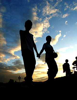 一對(duì)情侶在西湖斷橋上漫步。趙小軍 攝