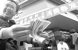 商務(wù)部副部長姜增偉明確表示:“在特殊的條件下采取特殊的辦法,我認(rèn)為是一項比較可行的選擇。我們一些城市,比如成都、杭州發(fā)放了一些消費券,據(jù)我了解已經(jīng)產(chǎn)生了一定的作用,對拉動消費起到了推進(jìn)作用!