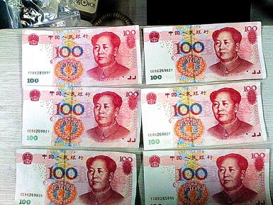 晚上姚先生夫婦回到家收賬,“我用驗(yàn)鈔機(jī)查收,發(fā)現(xiàn)6張百元鈔票都是假的。老人家對錢接觸得不是很多,根本沒意識到那是假鈔!碑(dāng)即姚先生就判斷是下午那伙人給的假錢,因?yàn)檎惶,只有那幾筆生意,“他們肯定是一伙的,看老人一個(gè)人看店,便想得便宜!币ο壬Q,這些假鈔一般人根本看不出來,外表和真鈔一模一樣,他用驗(yàn)鈔機(jī)才驗(yàn)出是假鈔。姚先生向記者展示收到的6張假鈔,其中竟然有兩張編號是一模一樣的,均為CE86269827,其它四張編號分別為CE86269828、CE86269821、TJ88285895、TJ88285897。