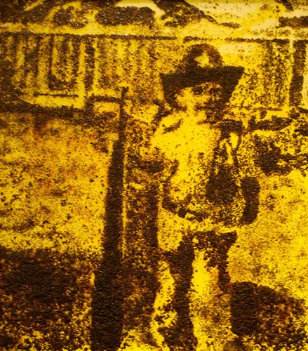 美國(guó)加利福尼亞州藝術(shù)家克里斯·楚門介紹說(shuō),他花費(fèi)了數(shù)年時(shí)間才完成這幅肖像畫(huà)。他最初想自己捕捉作畫(huà)所需的20萬(wàn)只螞蟻,但最終不得不求助于為蜥蜴提供飼料的螞蟻飼養(yǎng)場(chǎng)。楚門把買來(lái)的螞蟻毒死并用除漆劑進(jìn)行處理,將處理好的螞蟻尸體封入樹(shù)脂中制成一幅人物肖像,畫(huà)中扮成西部牛仔的小男孩是他6 歲的弟弟布里斯。