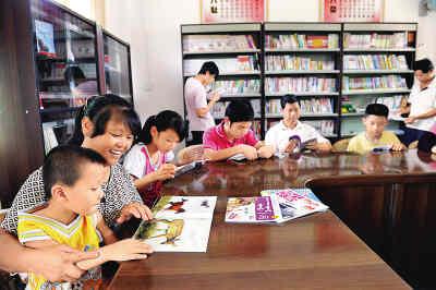 廣東梅縣松源鎮(zhèn)橫坊村村民在“農家書屋”充電。鐘小豐攝(新華社發(fā))