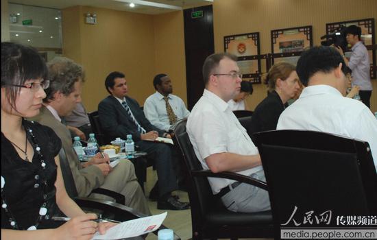 “新聞茶座”現(xiàn)場與會的中外記者 攝影/人民網(wǎng) 趙光霞