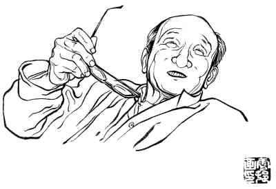 黃老確實(shí)非常喜歡表演藝術(shù),就是在交談中也常夾雜四川話、天津話、江蘇話等方言,前些年還常!皯虬a”纏身,不能自拔。一次,德國(guó)朋友領(lǐng)著攝制組來(lái)給黃老拍電影,是記錄黃老和英若誠(chéng)用英語(yǔ)合演《訪鼠測(cè)字》的片子。演著,演著,黃老忽然從凳子上翻了個(gè)倒“吊毛”,接著一轉(zhuǎn)身,又從凳子下面鉆了出來(lái)。嚇得全家人目瞪口呆,生怕給老爺子摔出個(gè)好歹來(lái),可他卻一本正經(jīng)地說(shuō):“我?guī)熜滞鮽髭【褪沁@么演的,我不能少了……”