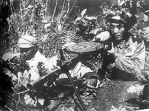 1952年10月14日清晨,“聯(lián)合國軍”的300余門大炮、27輛坦克、40余架飛機發(fā)瘋地向五圣山南的兩個小山頭傾瀉著彈藥。強烈的沖擊波激蕩著坑道,高地上的志愿軍守備部隊就像是乘坐著小船在波浪滔天的大海上顛簸,有的小戰(zhàn)士被活活震死!