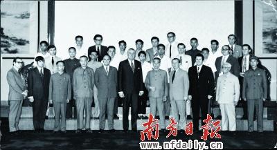 ▲周恩來(lái)和惠特拉姆等在人民大會(huì)堂的合影。
