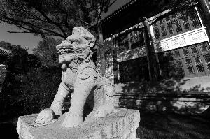在文津街國家圖書館門前,一對(duì)威武的石獅滿面滄桑,雙爪和臀部還有修補(bǔ)的痕跡。“沒錯(cuò),這對(duì)劫后余生的石獅就是來自圓明園!眰鬟_(dá)室的守門人對(duì)石獅的來歷略知一二。石獅長170厘米,高約300厘米。上世紀(jì)30年代由圓明園移至此處。
