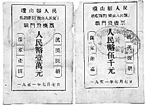 ?谀壬依锉4嬷鴥蓮埈偵娇h發(fā)動百姓向志愿軍捐款,購買“瓊山人民號”飛機(jī)的證明捐款票證。 沈善東 攝