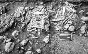 2003年到2006年,黃萬波與法國科考隊(duì)在龍骨坡發(fā)現(xiàn)了一個(gè)3平方米左右的化石層。重疊堆積著大量的動物前后腿化石,有明顯的石器砸削痕跡,就此判斷有人類活動。