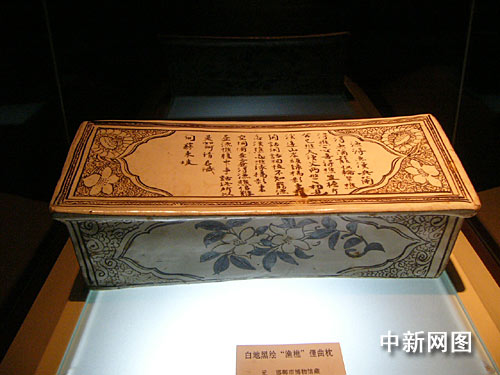 瓷州窯-白地黑繪'漁樵'俚曲枕