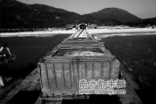 昨日下午5時(shí),臨時(shí)碼頭的警戒線范圍不斷擴(kuò)大,延伸到距離岸邊200米的位置。馮紹文帶著幾名水晶宮的施工人員打算到駁船上了解情況,但被一名帶袖標(biāo)的打撈人員拒絕。馮紹文只好站在碼頭邊,望著百米外的沉箱。