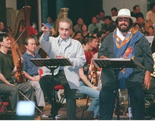 2001年6月,先期到達(dá)北京參加世界三大男高音午門演唱會(huì)的帕瓦羅蒂和卡雷拉斯,20日下午與中國(guó)中央歌劇院的演員和樂隊(duì)一起排練。 中新社發(fā) 李剛 攝
