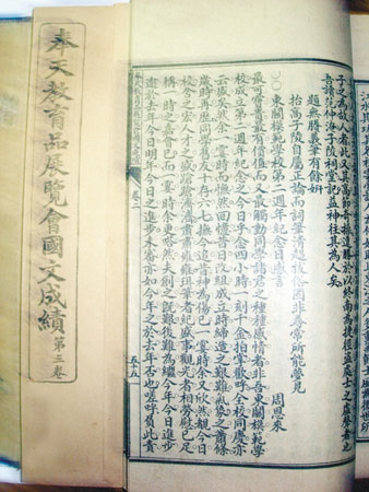 今天(3月5日)是敬愛的周恩來總理誕辰110周年,為紀(jì)念這個(gè)特別的日子,3月4日,沈陽著名收藏家詹洪閣首次向沈陽日?qǐng)?bào)展示了83年前由奉天圖書發(fā)行所印發(fā)的《奉天教育品展覽會(huì)國文成績》四冊(cè)一套的圖書,他小心翼翼地翻開了該書介紹說:“你看,這套書的第二卷55頁、56頁上,刊登了周恩來在沈陽讀書時(shí)所寫的一篇作文《東關(guān)模范學(xué)校第二周年紀(jì)念感言》。據(jù)我了解,這是目前所發(fā)現(xiàn)的周恩來最早的一篇文章!